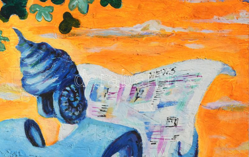 Szekeres Karrus Imre (1969-): Újság. Olaj, farost. Jelzett. Apró sérülésekkel. 70x50 cm