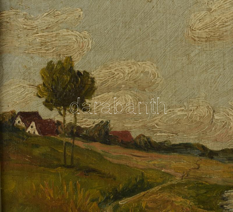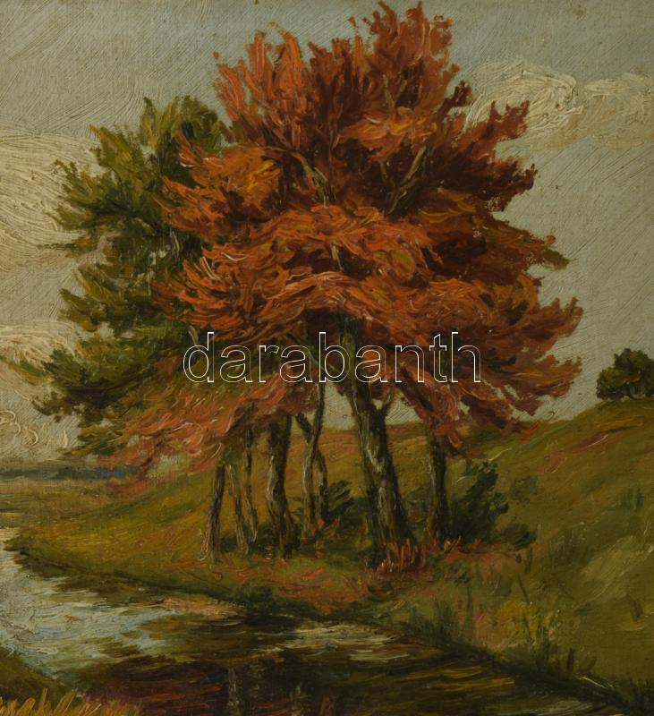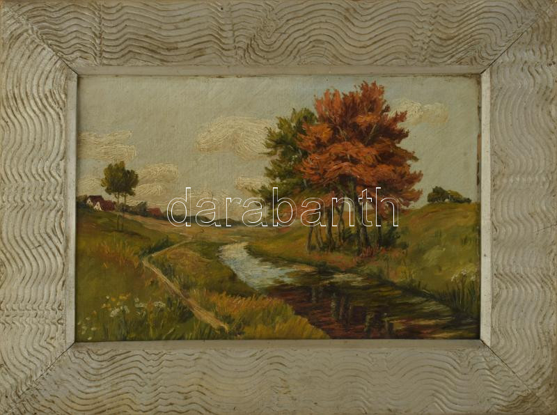 Szongoth Anna (1908-1991): A Csaholy patak Tasnádnál (Szilágyság, Románia), 1920-as évek. Olaj, karton. Jelzés nélkül. Hátoldalán román kiviteli bélyegzéssel. 28,5x42 cm. Dekoratív fakeretben.