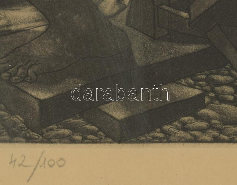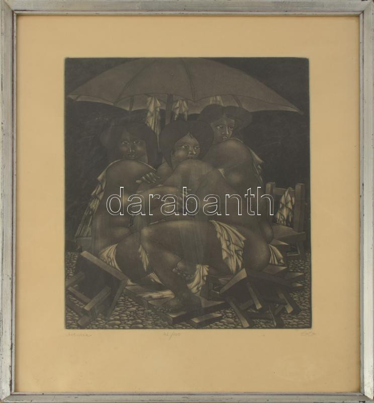 Tot, Amerigo (1909-1984): Artisták. Mezzotinto, papír, jelzett és datált (Tot 80), számozott (42/100). Üvegezett fakeretben, 40x30 cm