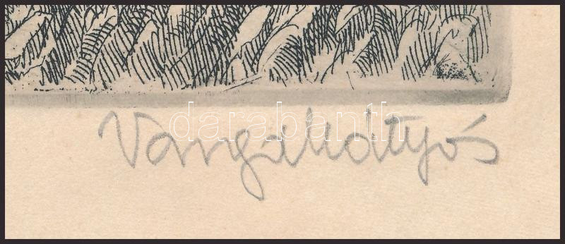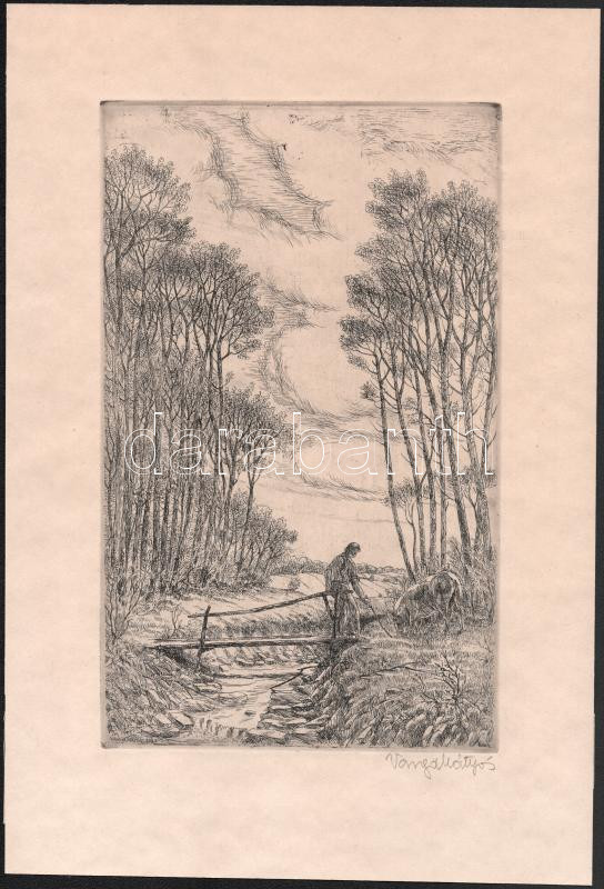 Varga Mátyás (1910-2002): Tehénpásztor. Linómetszet, papír, jelzett, lap szélén ázásnyommal, 30×18,5 cm