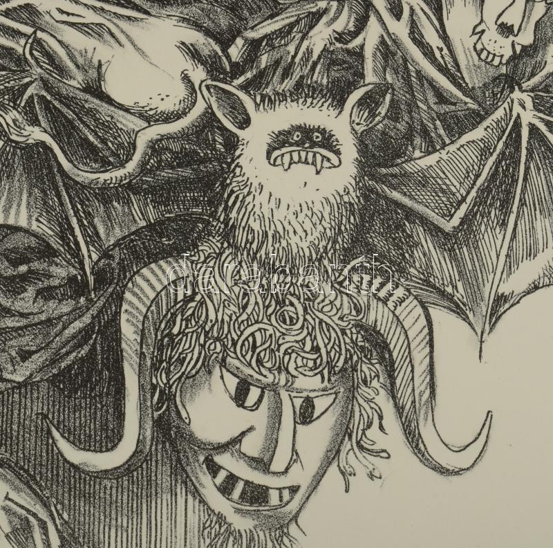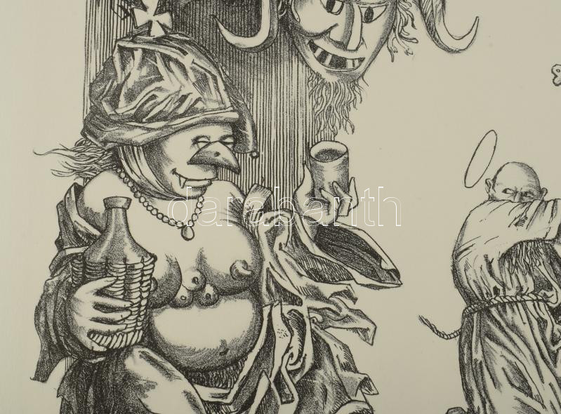 Vén Zoltán (1941-): Szent Antal megkísértése. Litográfia, papír, jelzett, művészpéldány EA XV/XII számozással, 38×27,5 cm