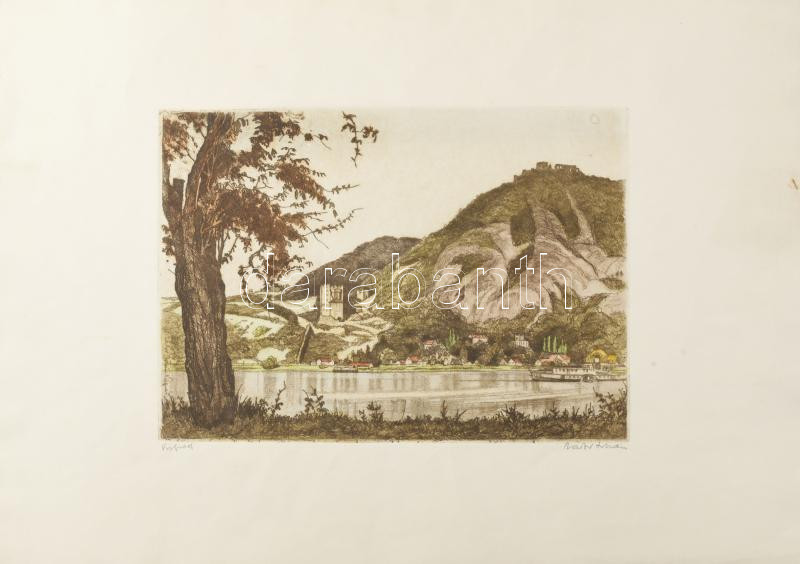 Zádor István (1882-1963): Visegrád. Színezett rézkarc, papír, jelzett. Lapszéli elszíneződéssel. 25×34,5 cm
