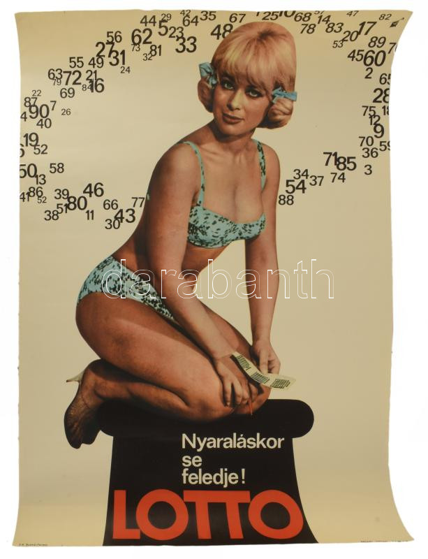 1966 "Nyaraláskor se feledje!", Lottó plakát, ofszet, papír, jelzés nélkül, hajtásnyomokkal, egészen lapszéli apró szakadásokkal, 68,5×47 cm