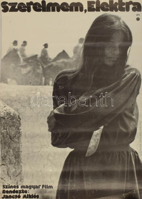 1974 Szerelmem Elektra, színes magyar film plakát, rendezte: Jancsó Miklós, javított szakadással, gyűrődésekkel, 56×40 cm