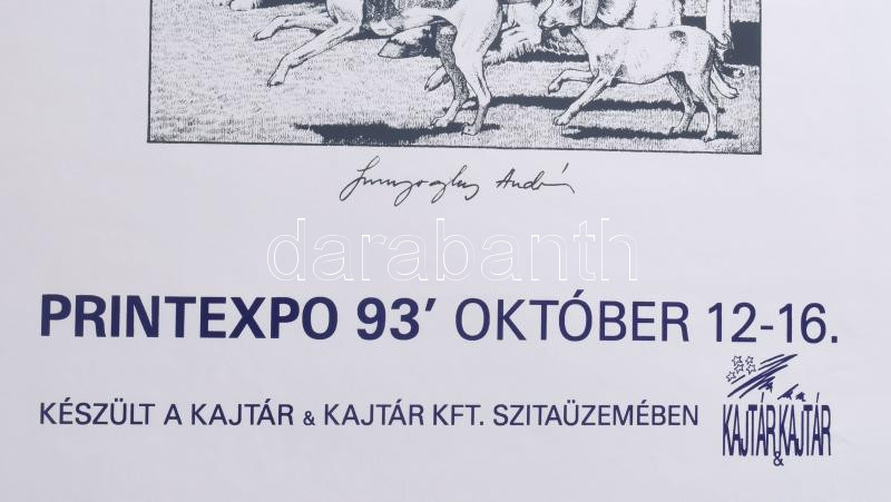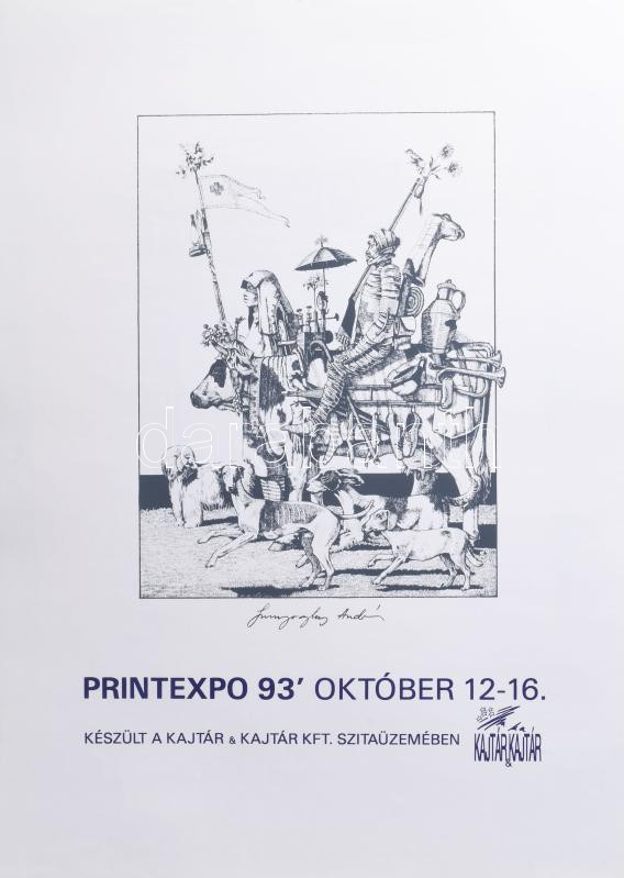 1993 Printexpo '93, Szunyoghy András művével illusztrált plakát. Szitanyomat, papír. Jelzett a plakáton. 59×42 cm
