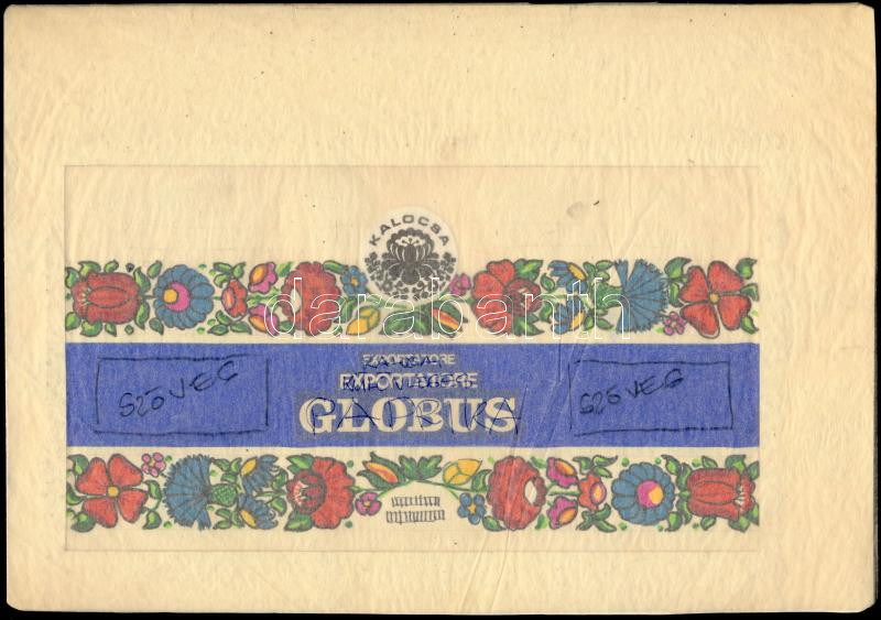 1971 Marschalek Á. grafikus kézzel festett vázlata a kalocsai paprika csomagolásához, 13×23 cm