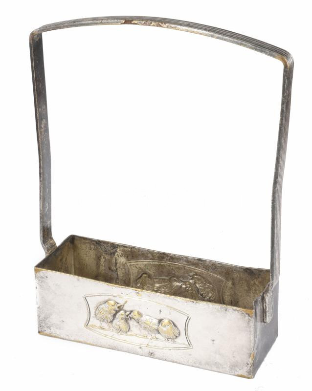 Csibés díszítésű alpakka kínáló 15x20 cm