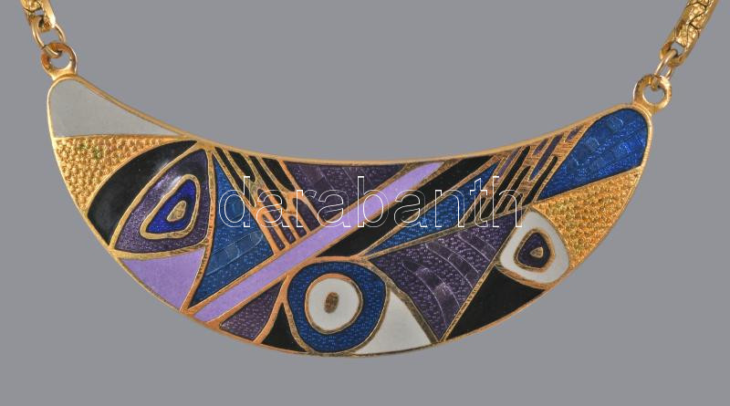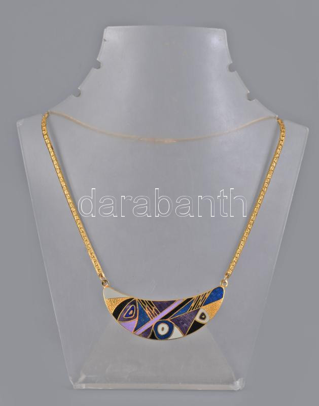 Aranyozott, zománcozott designer nyaklánc, h: 42 cm