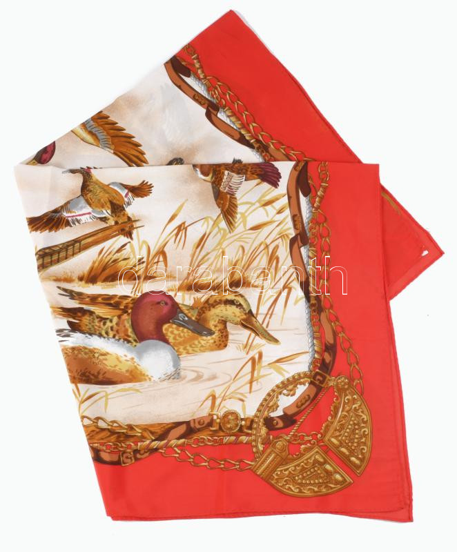 Olasz piros szélű madaras kendő, 82x82 cm
