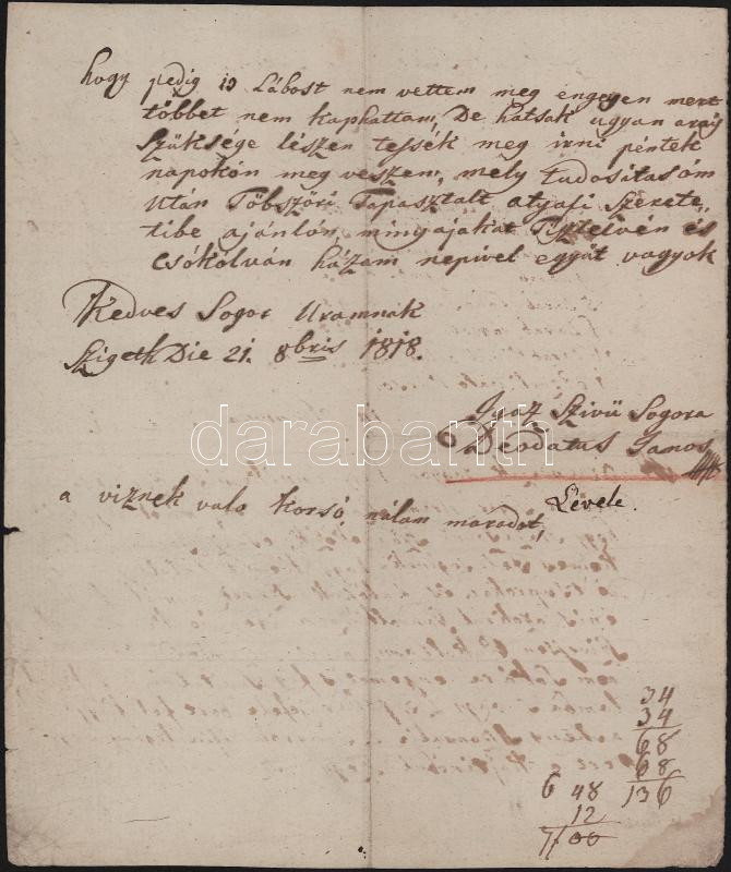 1818 Máramarossziget (Szigeth), kézzel írt levél
