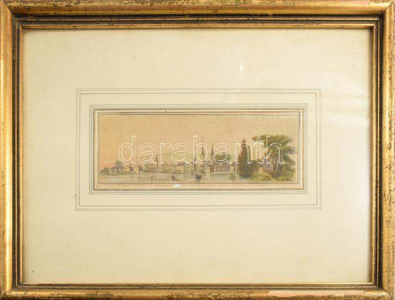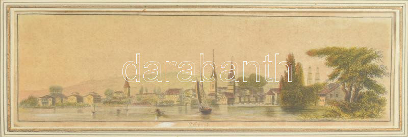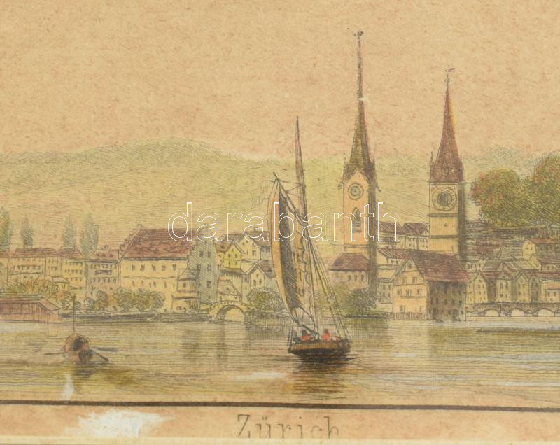 Zürich színezett acélmetszet, üvegezett keretben, 6x16 cm