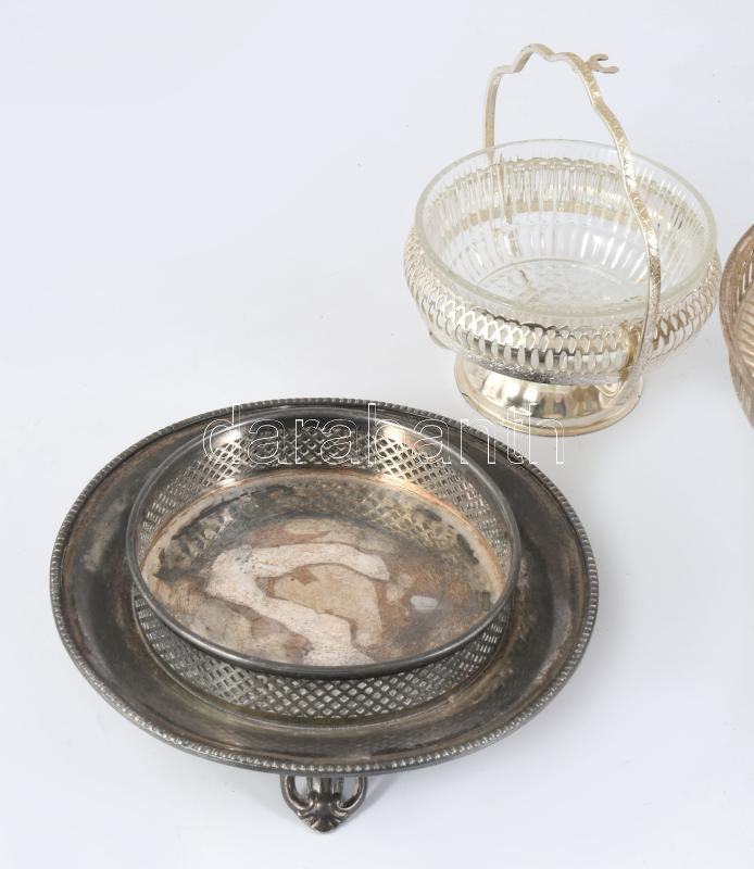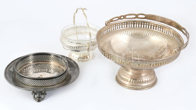 3 darab ezüstözött kínáló, d: 21 cm alatt
