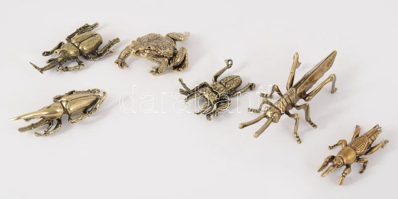 6 darab bronz rovar és béka figura, h: 10 cm alatt