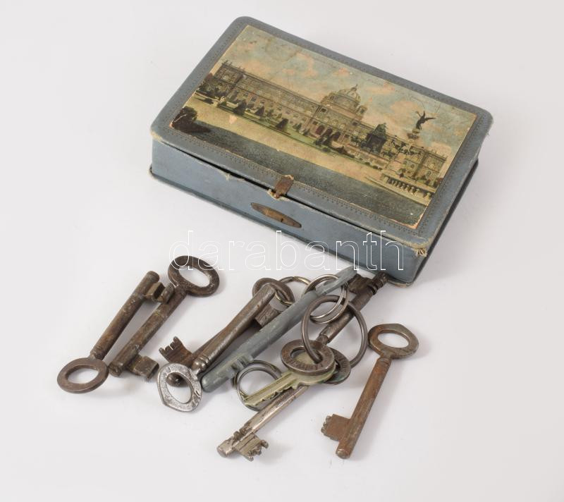 Antik doboz kulcsokkal, 11x16 cm