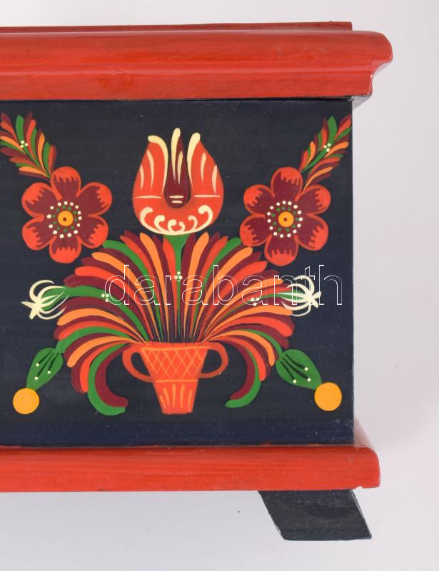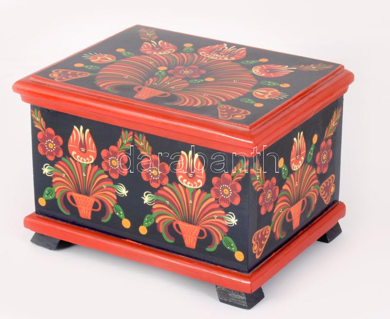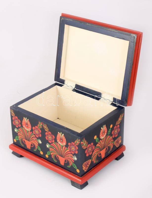 Kézzel festett népi mintás fa doboz, 16x22x15 cm