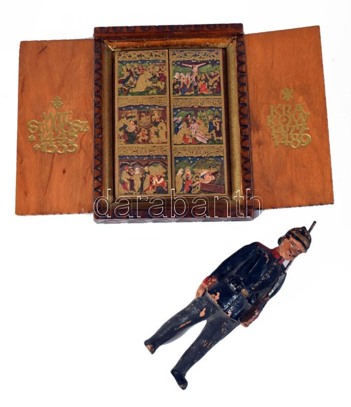 Modern ikon dísztárgy + Antik katona figura m: 11 cm