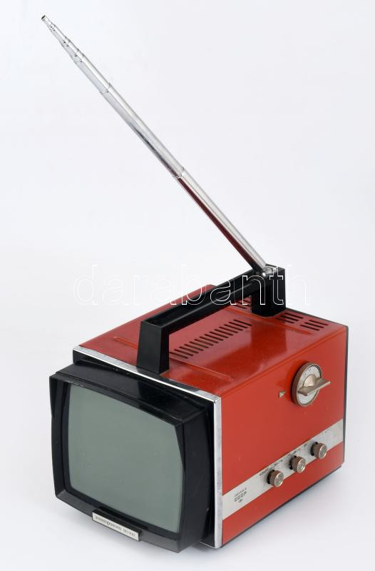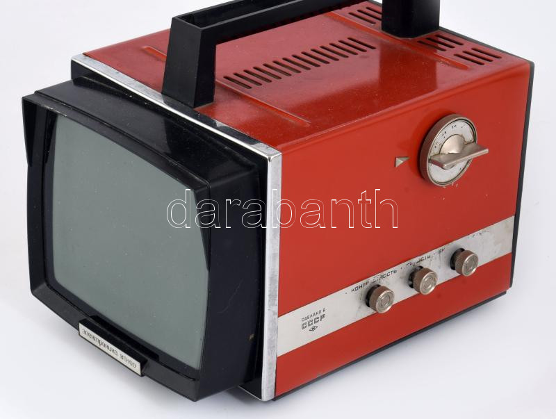 cca 1970 Szovjet kisméretű televízió, kábel nélkül, működik, 22x14 cm