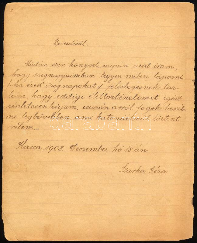 1908 Kassa, katona naplója, katonaidejéről, Szarka Géza. 161 magyar nyelven beírt oldal