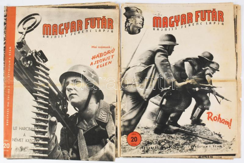 1941 Magyar Futár, Rajniss Ferenc lapja I. évf. 6. és 7. számai (2 db), benne hírekkel és képekkel a keleti frontról, kis sérülésekkel