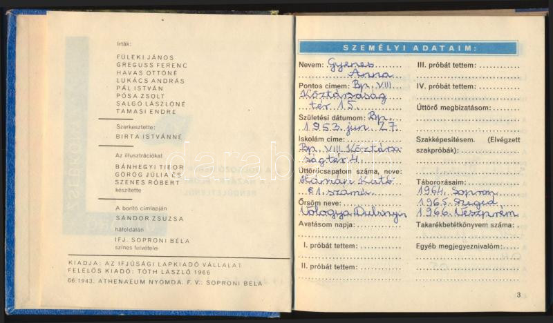 1966 Úttörő zsebkönyv 1966-1967, Ifjúsági Lapkiadó Vállalat, 143p