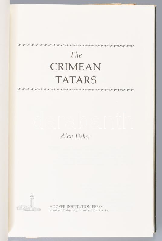 Alan W. Fisher: Crimean Tatars. Studies of Nationalities in the USSR. Stanford,1978,Hoover Institution Press. Angol nyelven. Kiadói egészvászon-kötés, karcos, kopott kiadói papír védőborítóban.