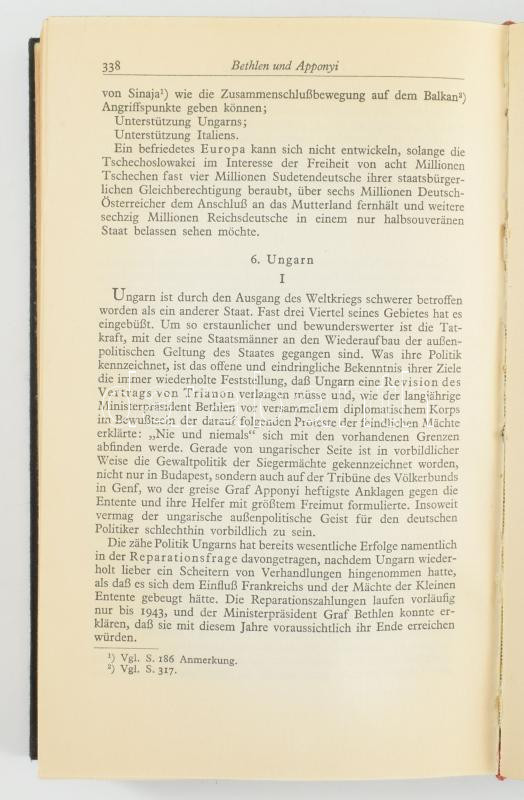Der Kampf um die deutsche Aussenpolitik. Benne Magyaország fejezettel: "6. Ungarn." 338-342 p. Leipzig,1931,Paul List Verlag, 425+3 p.+1 (kihajtható térkép) t. Német nyelven. Kiadói aranyozott egészvászon-kötés.
