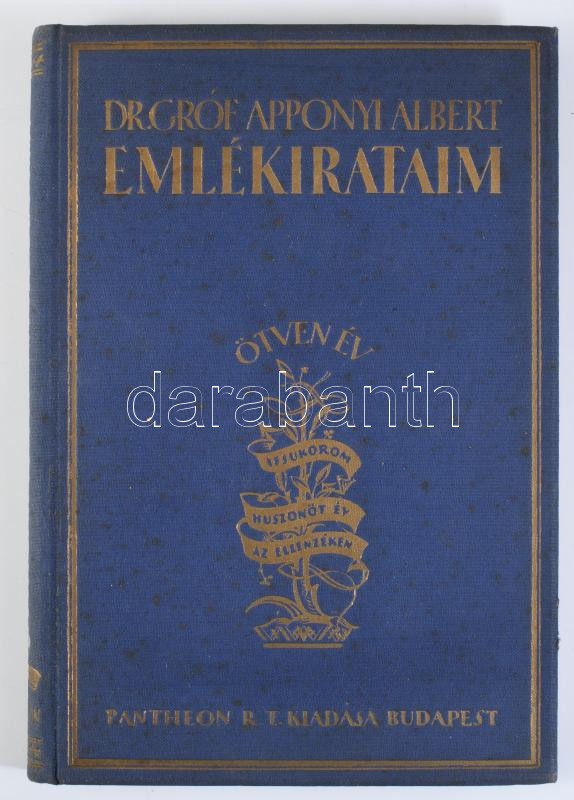 Dr. Gróf Apponyi Albert: Emlékirataim. Ötven év. Ifjúkorom - Huszonöt év az ellenzékben. Bp., (1922), Pantheon Irodalmi Intézet Rt. (Globus-ny.), 257+6 p. Második, átnézett kiadás. Kiadói aranyozott egészvászon-kötés.