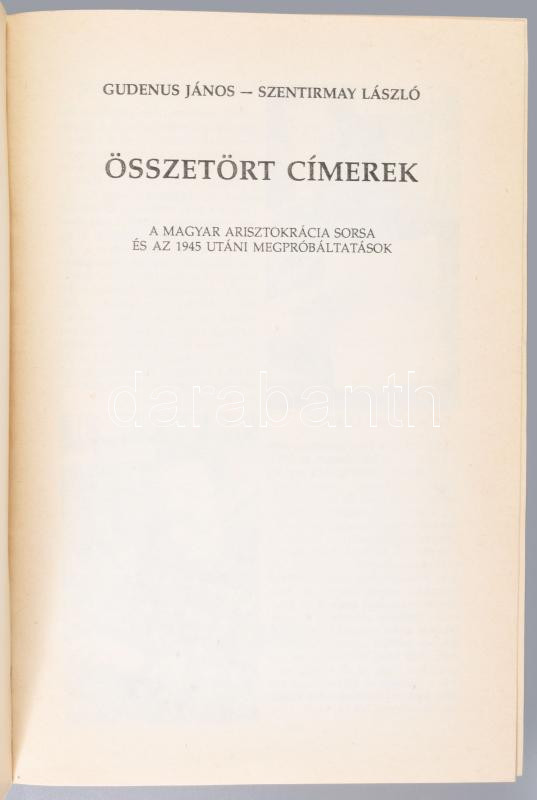 Gudenus János József - Szentirmay László: Összetört címerek. A magyar arisztokrácia sorsa és az 1945 utáni megpróbáltatások. Bp., 1989, Mozaik, 511+(2) p. Kiadói papírkötés, kiadói papír védőborítóban.