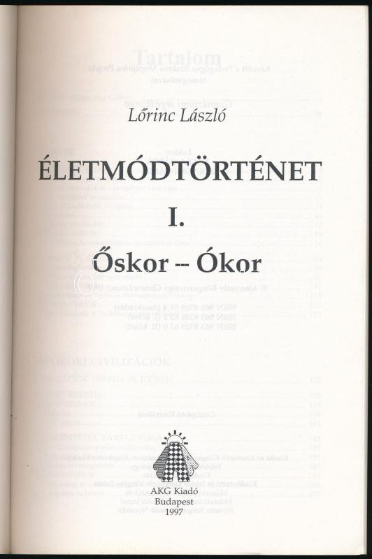 Lőrinc László: Életmódtörténet I. Őskor - ókor. Bp., 1997, AKG. 291p. Kiadói papírkötés, jó állapotban.