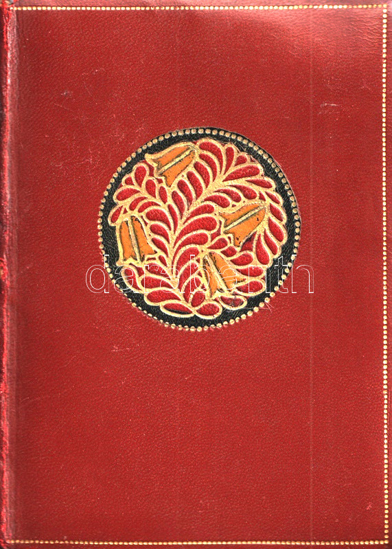 Aranyozott, festett, enyhén sérült gerincű korabeli bibliofil bőrkötésben, felül aranyozott lapszélekkel. Szép példány.
