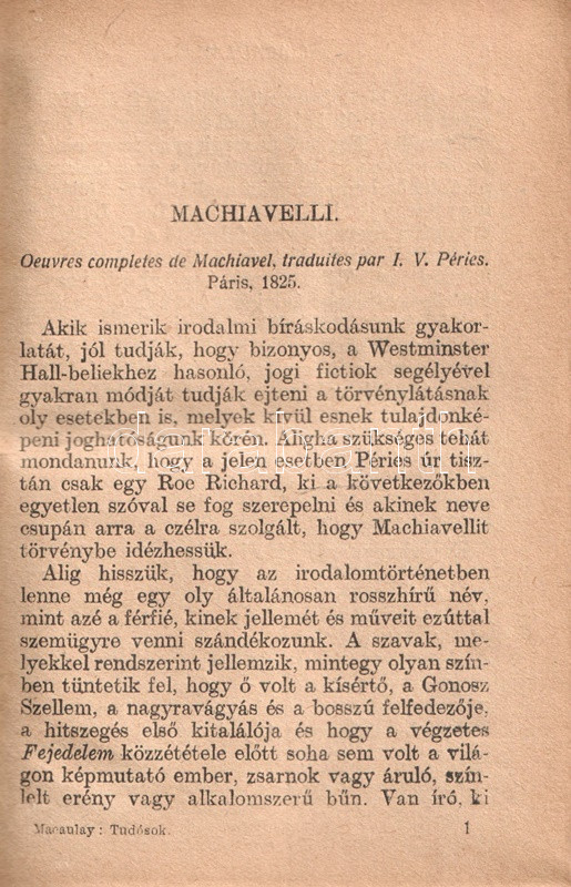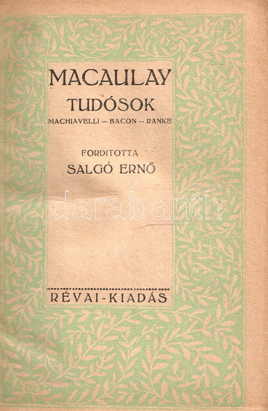 Tudósok. Machiavelli, Lord Bacon, Ranke. Fordította Salgó Ernő.