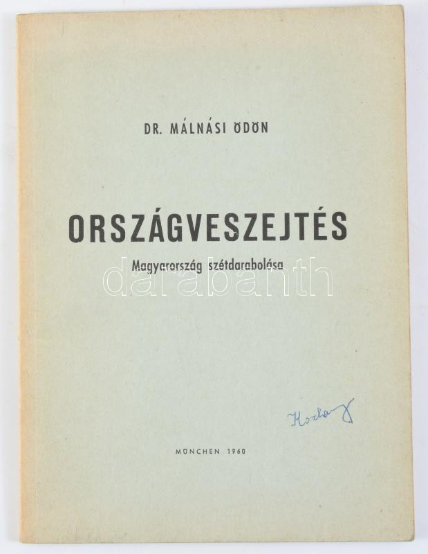 Málnási Ödön: Országveszejtés. Magyarország szétdarabolása. München, 1960., Ledermüller Olivér-ny., 47 p. Emigráns kiadás. Kiadói papírkötés.