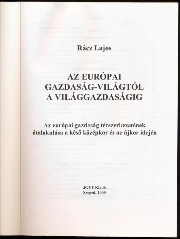 Rácz Lajos: Az európai gazdaság-világtól a világgazdaságig. Az európai gazdaság térszerkezetének átalakulása a késő középkor és az újkor idején. Szeged, 2000, JGYF Kiadó, 156 p. Egyetlen kiadás. Kiadói papírkötés.