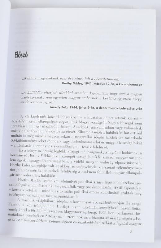 Sebők János: A titkos alku. Zsidókat a függetlenségért. Horthy és a holokauszt. hn.,én., Szerzői. Kiadói papírkötés. + Horthy Miklós a dokumentumok tükrében. Közzéteszi: H. Haraszti Éva. Bp., 1993, Balassi. Kiadói papírkötés.
