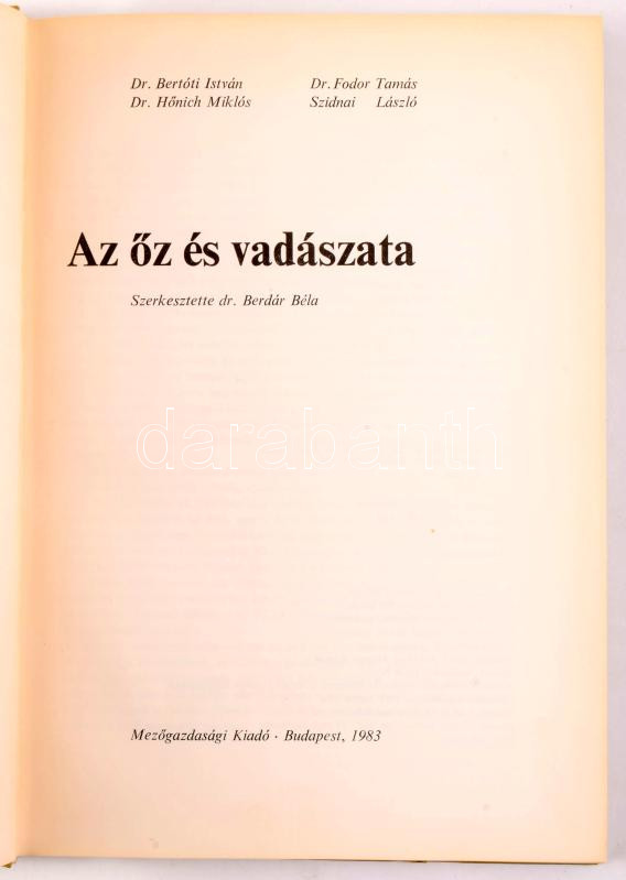 Dr. Berdár Béla (szerk.): Az őz és vadászata. Bp., 1983, Mezőgazdasági. Kiadói egészvászon kötés, jó állapotban.