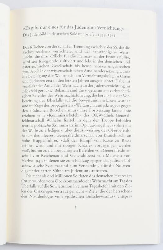 Manoschek, Walter (Hg.): "Es gibt nur eines für das Judentum: Vernichtung." Das Judenbild in deutschen Soldatenbriefen. Hamburg, 1955, Hamburger Edition. Német nyelven. Kiadói papÃrkötés.