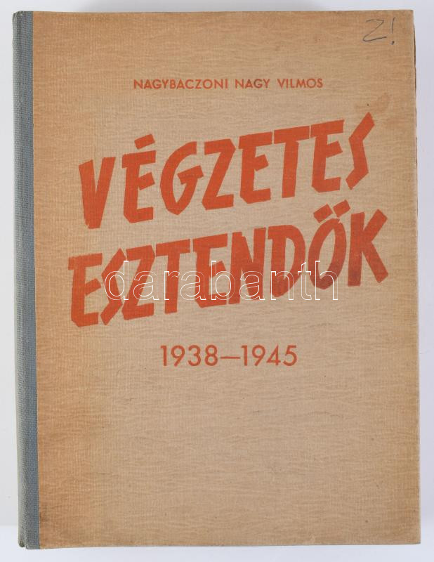 Nagybaczoni Nagy Vilmos: Végzetes esztendők 1938-1945. (Kispest, 1947), Körmendy, 1 t.+ 272 p. Első kiadás. Kiadói félvászon-kötés, kissé kopott borítóval, kissé laza fűzéssel.