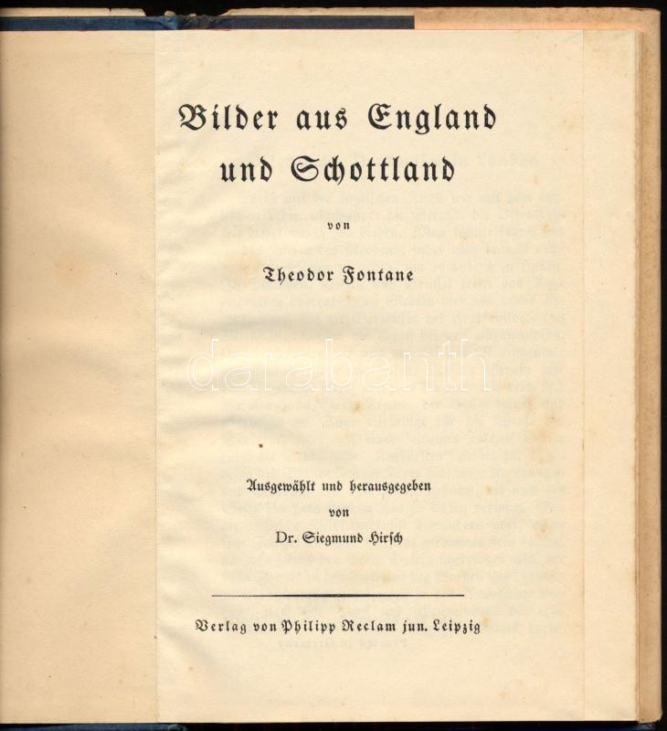 Fontane, Theodor: Bilder aus England und Schottland Philipp Reclam, Leipzig. 86p. Kiadói kartonált papírkötésben papír védőborítóval