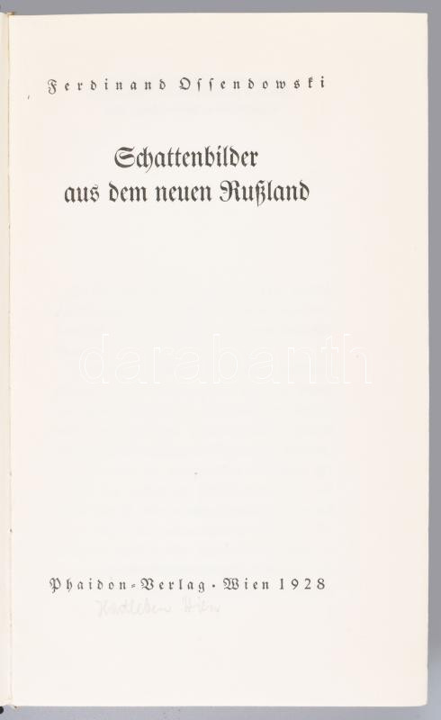 Ossendowski, Ferdinand: Schattenbilder aus dem neuen Rußland. Übs. v. H. Klepetar.