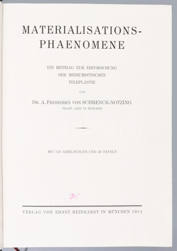 Schrenck-Notzing: Der Kampf Um Die Materialisationsphänomene. München 1914. Reinhardt 520p. Kiadói egészvászon kötésben