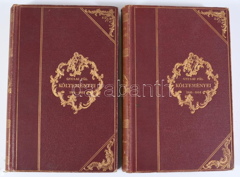 Gyulai Pál költeményei. I-II. köt. [Teljes.] Bp., 1894, Franklin-Társulat, 1 (címkép) t.+ [4]+310 p.; 299+[1] p. Harmadik, bővített kiadás. Kiadói aranyozott egészvászon-kötés, Gottermayer-kötés, aranyozott lapélekkel, nagyrészt jó állapotban.