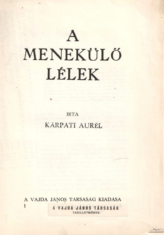 A címlapon elhelyezett címke szerint példányunk a Vajda János Társaság tagilletménye. A címlap és az azt követő néhány levél sarkán apró hiány, példányunk fűzése kissé meglazult.
