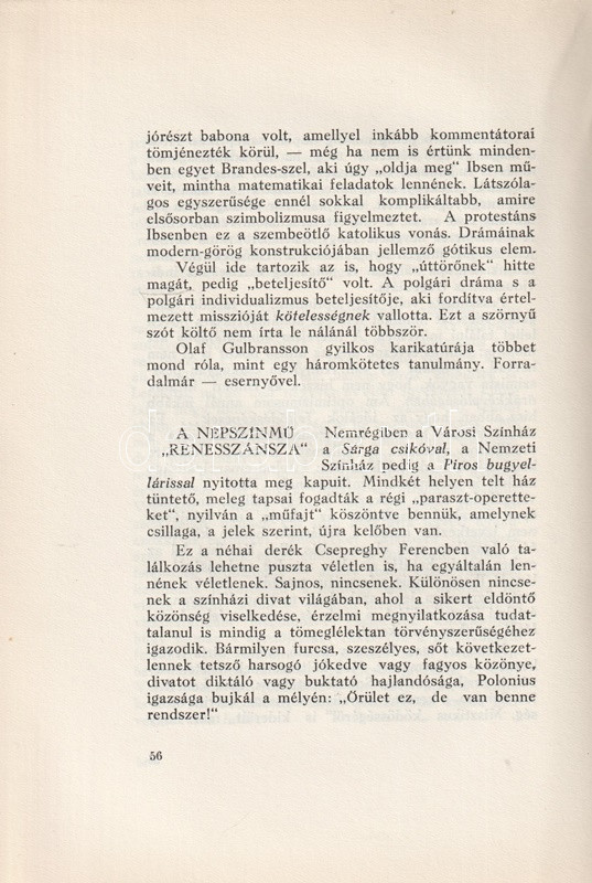 Kárpáti Aurél (1884-1963) író, újságíró, színházi és irodalmi kritikus, a Vajda János Társaság egyik vezetője. Kötetében színházi kritikáiból és portréiból szemezget.