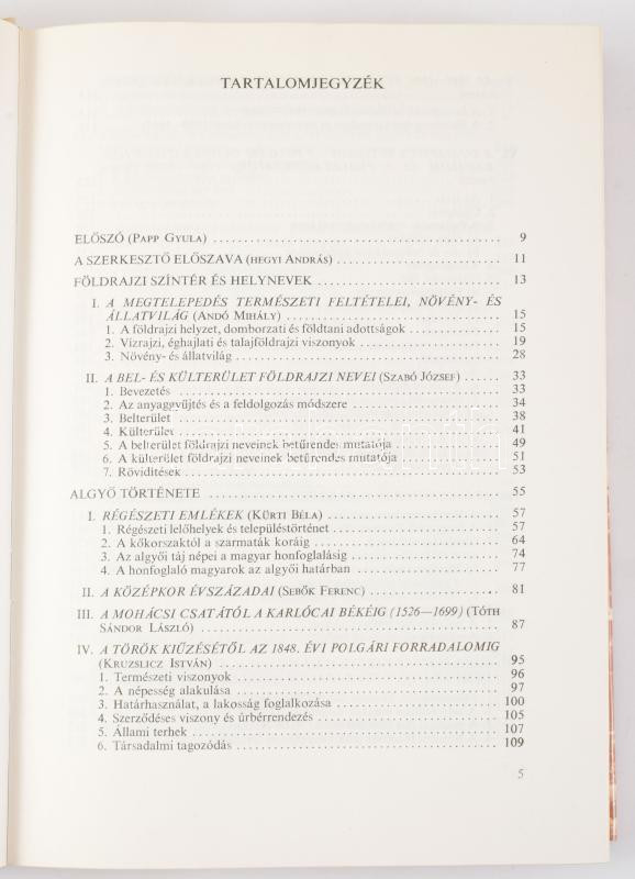 Hegyi András (szerk.): Algyő és népe. Tanulmányok. Szeged, 1987, Somogyi-könyvtár, 460+[4] p.+ 84 (fekete-fehér képek) t.+ 7 (kihajtható térképek) t. Kiadói egészvászon-kötés, kiadói papír védőborítóban. Megjelent 1500 példányban.