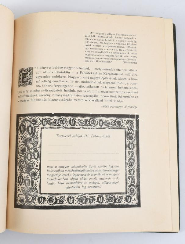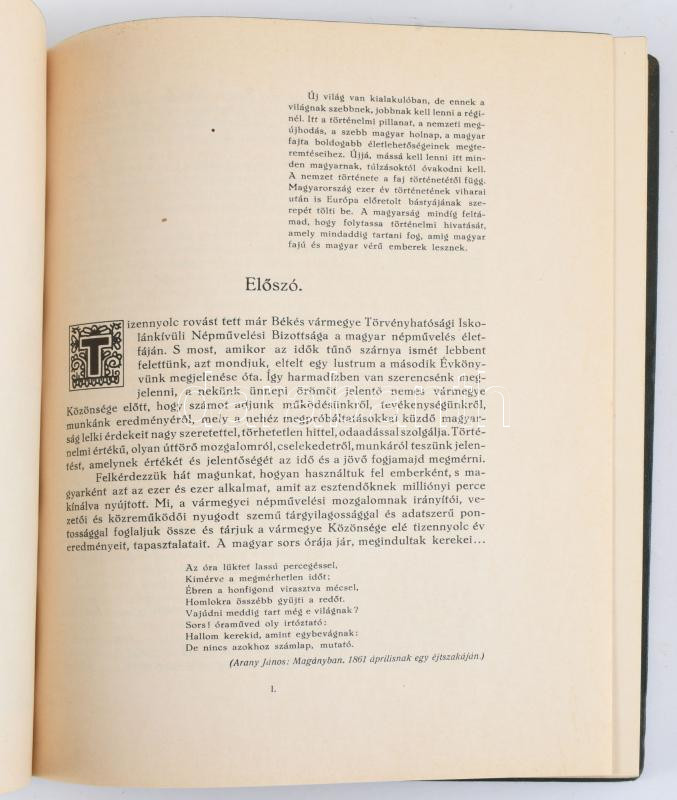 Tantó József: "Viharsarok" napsütésben. : (Békés vármegye törvényhatósági iskolánkívüli népművelési bizottságnak III. évkönyve. Békéscsaba, 1939. Kőrösvdéki nyomda. 214 (4)p. Egyedi festett egészvászon kötésben dombnyornyomott bőr megyei címerrel, az eredeti papírborító bekötve, hozzá a szerző autográf dedikációja külön lapon, valamint a témához kapcsolódó néhány fotó, jegyzet.
