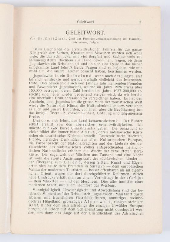 Taub, Herbert: Führer durch das Königreich der Serben, Kroaten und Slowenen (Jugoslawien). Volkswirtschaftlicher Verlag, Zurich, 1928. 360 (p) egészoldalas és kihajtható illsuztrációkkal. Kiadói papÃrborÃtóval, kis sérüléssel a gerincen.