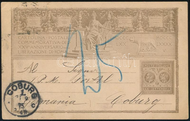 1895 Emlék képeslap Róma felszabadulásának 25. évfordulójára, "ROMA" - COBURG"