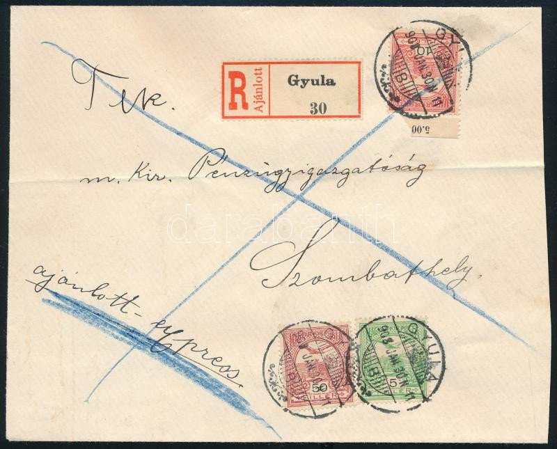 1903 Ajánlott expressz levél Turul 5f + 10f + 50f bérmentesítéssel "GYULA" - "SZOMBATHELY"
