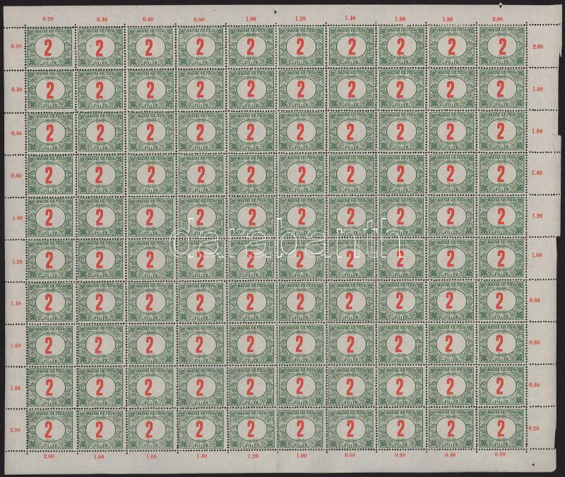 1915 Pirosszámú zöldportó 2f hajtott teljes ív (papírránc, fogelválások / paper crease, aparted perfs.)