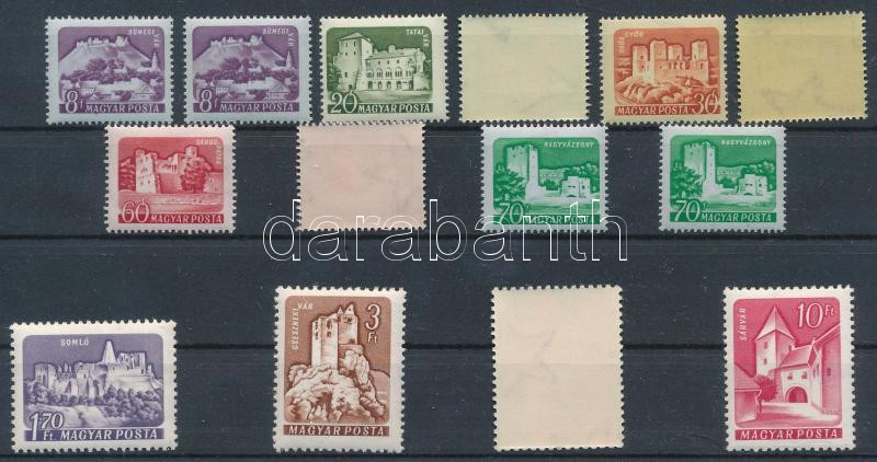 1960 Várak színes papíron 14 db bélyeg, köztük másodpéldányok is, mind XII. B vízjellel